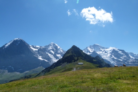 Im Bild mein Lieblingswandergebiet auf 2000m Höhe vor der atemberaubenden Kulisse von Eiger (3970m), Mönch (4099m), Jungfrau (4158m)CH
