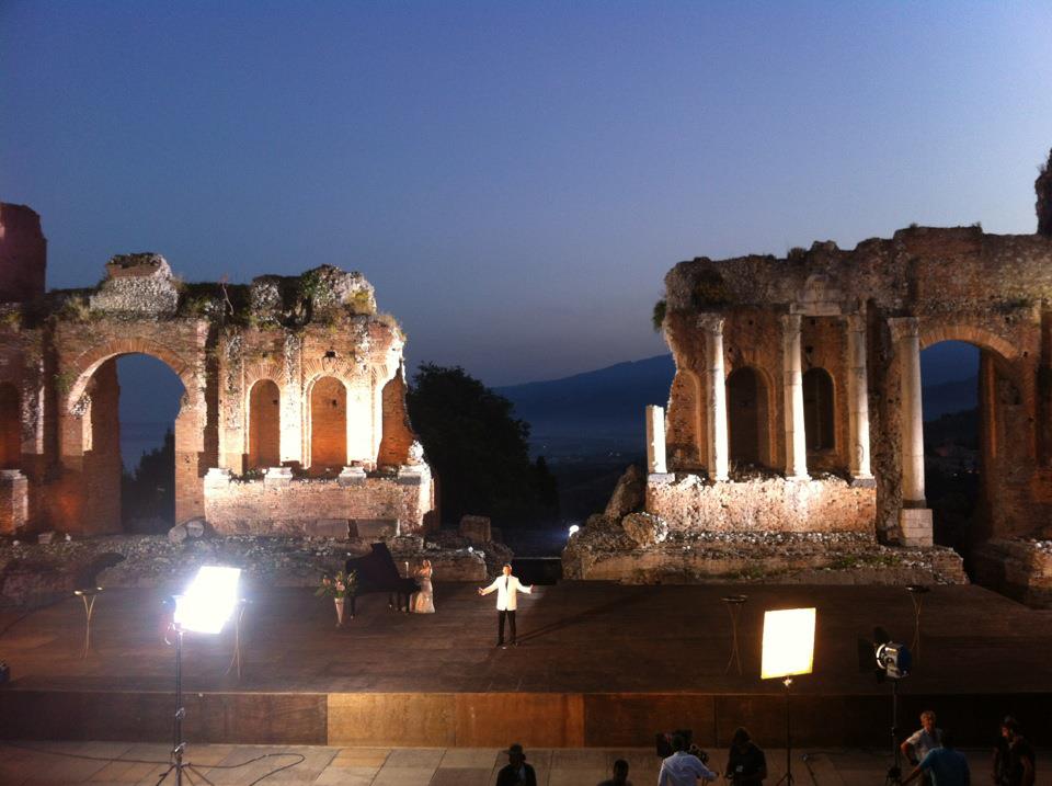 Vergangene Woche war Björn zwecks Filmaufnahmen in Sizilien und durfte für die Dreharbeiten "Kreuzfahrt im Glück" in diesem fantastischen Amphitheater Taormina auftreten.
