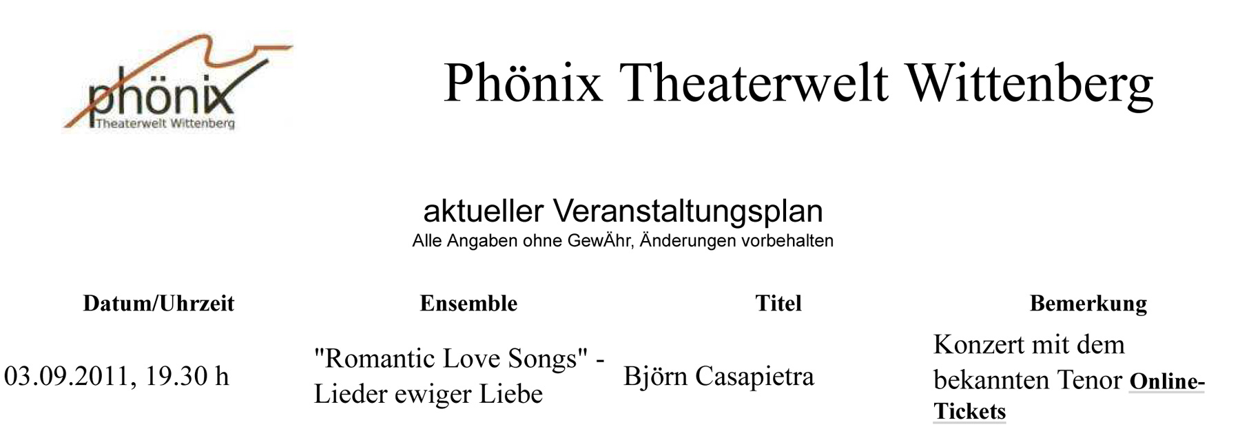 Lutherstadt Wittenberg hat 3 Theater und es ist zu einem Irrtum gekommen.