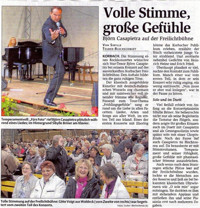 das Konzert in Korbach am Donnerstag, d. 30.06.11 ist zu vergleichen mit einem Bestseller, der sich monatelang auf Platz 1 hält. Ich könnte jetzt ebenso mehrere Seiten im Gästebuch füllen, soviel gibt es zu erzählen, beschreiben und kommentieren. Werde mich aber in gewohnter Weise auf meinen legendären Stenogrammstil konzentrieren.