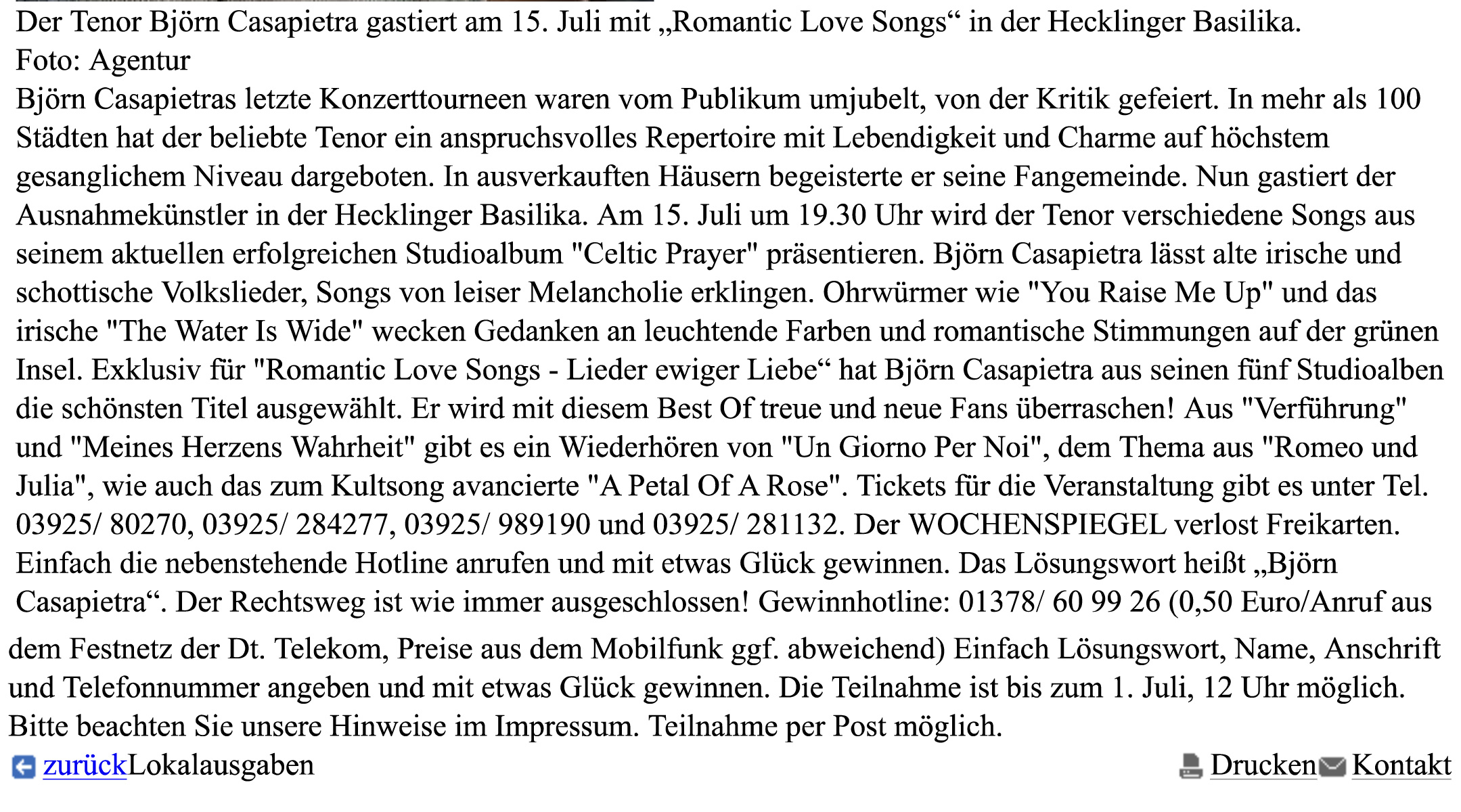 Pressebericht über Konzert in Oranienbaum