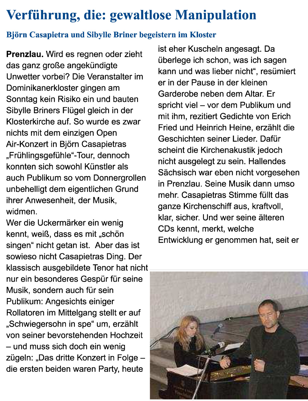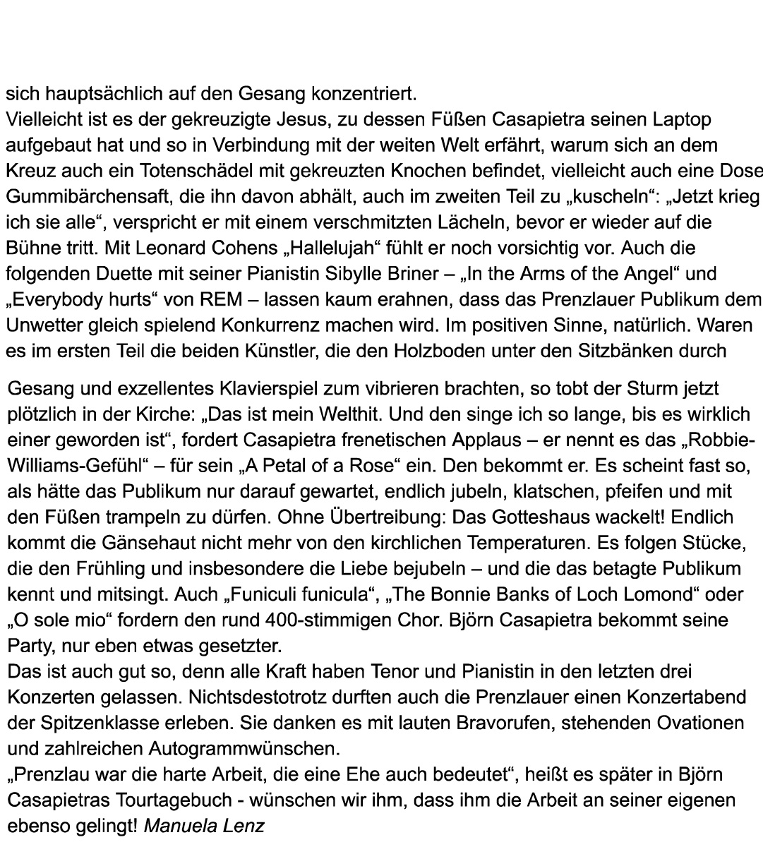umwerfender Pressebericht zum Konzert in Prenzlau