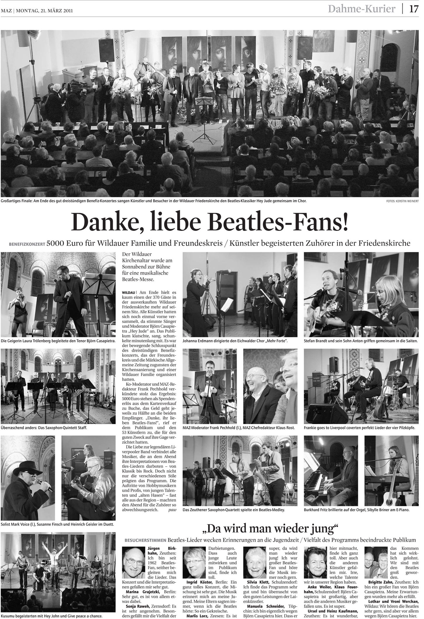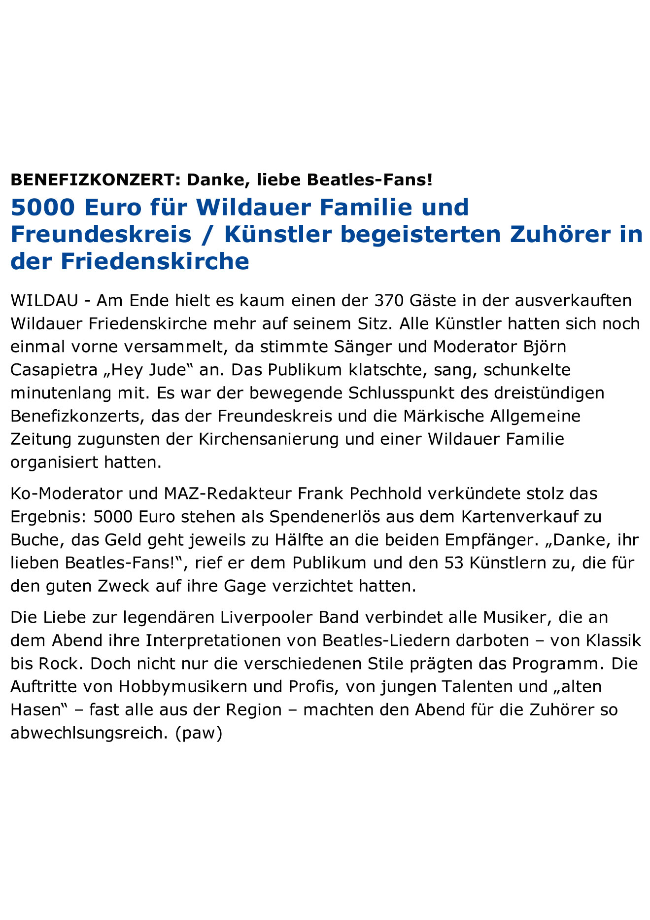 ausführlicher Pressebericht über das Benefizkonzert in Wildau