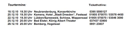 ich stöbere hier wirklich von Anfang an immer wieder gerne herum, und dabei ist mir eines aufgefallen: Ich habe noch nie so viele Beiträge und Lobeshymnen von einem Konzert, wie das in Hannover vom 10.10.2010 gelesen. Es war wirklich etwas Besonderes... Und zu Recht!!!!!!!!!!!Es gibt ja immer eine Steigerung und die war in Hannover wirklich da.... Und es war wieder mal etwas Besonderes, sonst wäre es nicht mein 10. Konzert gewesen und es werden Weitere folgen, die mich begeistern und nicht nur mich....!!!!!!!!!!!!!!!