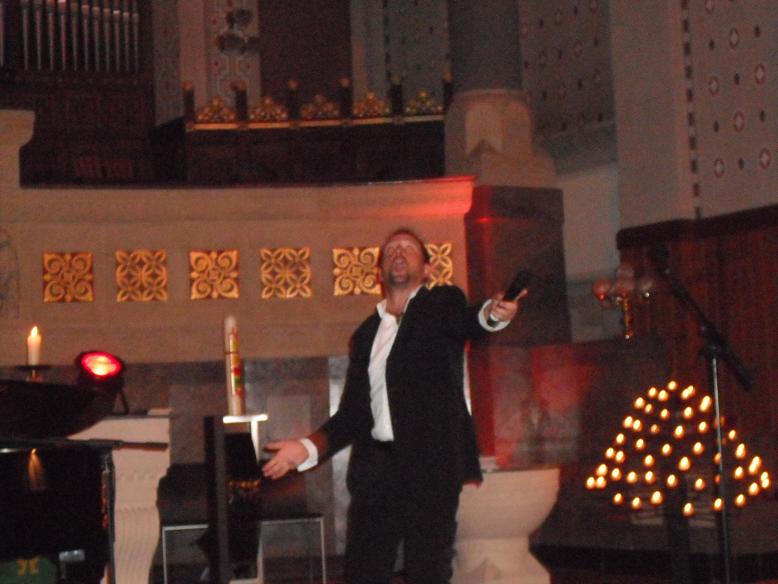 Es war ein Hochgenuss. Seiner wunderbare Stimme wurde durch die Arkustik der Kirche noch verstärkt. Es war einfach wunderbar. Man bekam eine Gänsehaut.