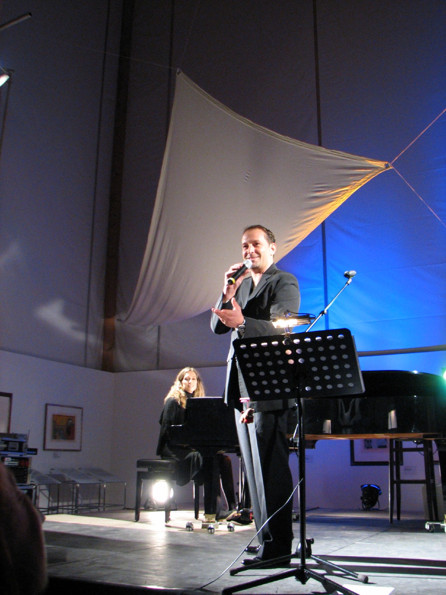 Ab 12.00 Uhr – seit Wochen ungewohnte 30 ° C und mehr in praller Sonne; eine schwarze Bühnenschachtel , sehr engagierte Tontechniker, ein ebenso engagierter Flügel  , sozusagen mitten in der Landschaft, einfache Holzbänke für das Publikum - und rundum eine soo gespannte Erwartung…