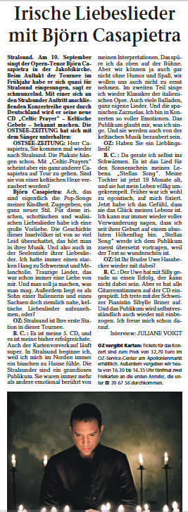 ein Interview ist in der Ostsee Zeitung erschienen...