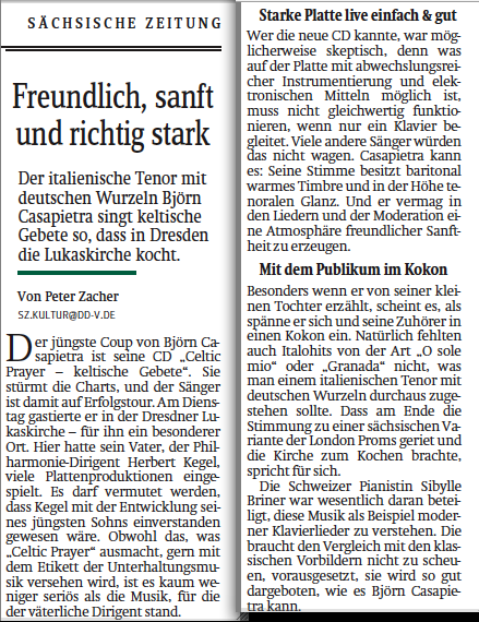 Wunderbar, all die Lieder der Celtic-Prayer-CD mal live zu hören, wo sie mir noch besser gefallen. Denn live kommt noch mehr Gefühl rüber.