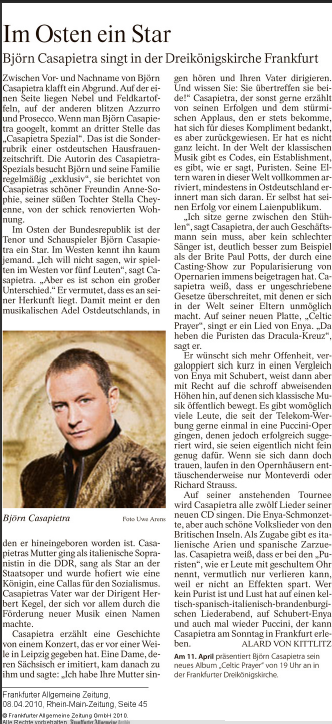 Da kriege ich soooooo einen Hals, wenn ich das lese "Im Osten ein Star"...... Hört das denn nie auf, diese Unterscheidung nach Ost und West? Ich bin auch in der DDR aufgewachsen und mir ging es nicht schlecht, im Gegenteil, aber es haftet auch nach 20 Jahren immer noch wie ein Makel an einem, wenn mann aus dem Osten ist. In dieser Kritik geht es nur um "Einen" aus dem Osten und nicht um Björns Musik, sein gesangliches Können, seine wunderschönen Konzerte und das macht mich wütend und traurig zu gleich.
