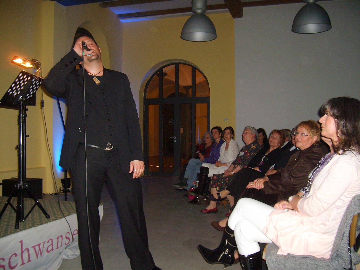 Das Licht ging aus, die Bühnenbeleuchtung änderte sich und Sibylle Briner wurde mit einem herzlichen Applaus begrüßt. Sie setzte sich an das Piano und begann, mit der Sicherheit, die volle Aufmerksamkeit der Besucher zu besitzen, dem Klavier die ersten zarten Töne zu entlocken. Alles stellte sich auf ein Solo der Pianistin ein. Es sollte aber ganz anders kommen. Ganz unbemerkt vom Publikum betrat Björn den Raum, stieg auf die Bühne und begann den unvergesslichen Abend mit dem Lied „HALLELUJAH“! Das fünfte Lied von seiner neuen CD „Celtic Prayer“. Wie ein außergewöhnlich schönes Bild, welches sich für immer in das Gedächtnis einprägt, fand der Klang der Worte dieses so warm gesungenen Liedes den direkten Weg in das Herz des Publikums. Die erste Spur war deutlich gelegt.