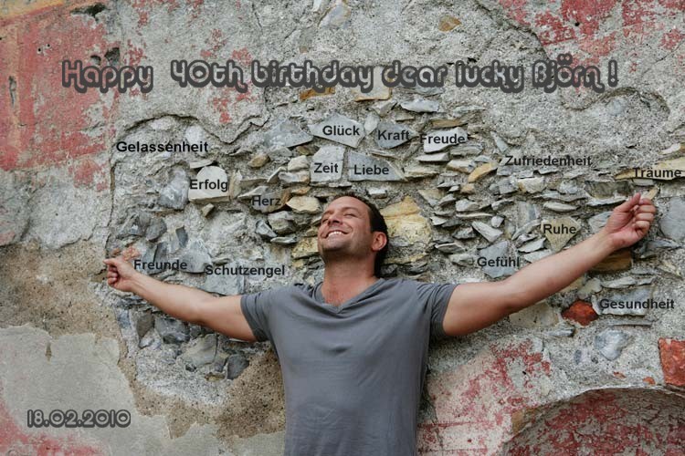 Herzliche Grüße zum 40. Geburtstag, lieber Björn, von Gudrun und Karl-Heinz.
