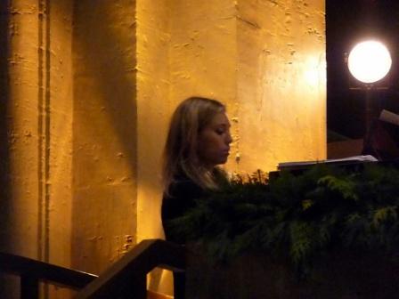 ...bezaubert hat auch wieder Sibylles Klavierspiel. Sie begleitet Björn perfekt und versteht es seinen Gesang zu unterstreichen ohne das Klavier in den Vordergrund zu drängen. Ihre Solostücke waren auch wieder ein Genuss. Eine Könnerin, von der man den Eindruck hat, sie würde am liebsten unsichtbar spielen, aber Gott sei Dank von Björn ab uns zu in den Vordergrund gerissen wird. Natürlich sang Björn auch wieder "den Hit" und der Einsatz des Braunschweiger Publikums war toll, Heinrich und Mathilde in ihrem Sarkophag waren sicher verwundert!? Der Chor allerdings war erst ein wenig schleppend, steigerte sich dann aber doch noch. Nun kann man natürlich darüber sinnen, ob es am Laienchor lag oder vielleicht doch an den Qualitäten des Chorleiters (Björn)?  Zur Textsicherheit wären Liederzettel vielleicht doch von Vorteil gewesen, irgendwie schlummern die Textzeilen der Weihnachtslieder doch noch sanft und selig in ihren Schubladen.