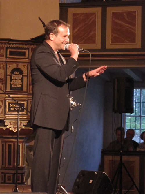 Der erste Teil des Konzertes war bestückt mit langsameren, und auch etwas schwereren Arien, während der zweite Teil u.a. das Publikum wieder zum Mitsingen animierte. Auch rezitierte Björn wieder Gedichte von Heine und Fried , was wunderbar beim Publikum ankam. Mit *O sole mio* wurde dann aber der Konzertabend zum Mitsingen eingeläutet ! Und ich muß sagen, es war fantastisch! Alle sangen mit und ich glaub`, Björn hatte seine Freude daran , denn, ich weiß nicht wieviel Zugaben gegeben wurden, denn es wurde geschlatscht, getrampelt, gerufen usw. Solch einen Abend dann noch hinterher mit so lieben Fans im Weinzelt neben der Kirche ausklingen zu lassen, den wird man nicht so schnell vergessen.