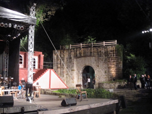 Nach ca. 2 Std. Fahrt begrüßten uns die ersten Regentropfen auf der Autoscheibe... zeigten uns... dass die Sonne schlafen gehen wollte. Auf dem Weg zur Freilichtbühne waren viele Konzertbesucher in überwiegend warmer Kleidung unterwegs. Froh waren wir doch, dass wir zu Hause in BS noch im "vorbei gehen" etwas wärmere Oberbekleidung ergriffen. Letztendlich kamen wir an einer überdachten, traumhaft liegenden Freilichtbühne an...