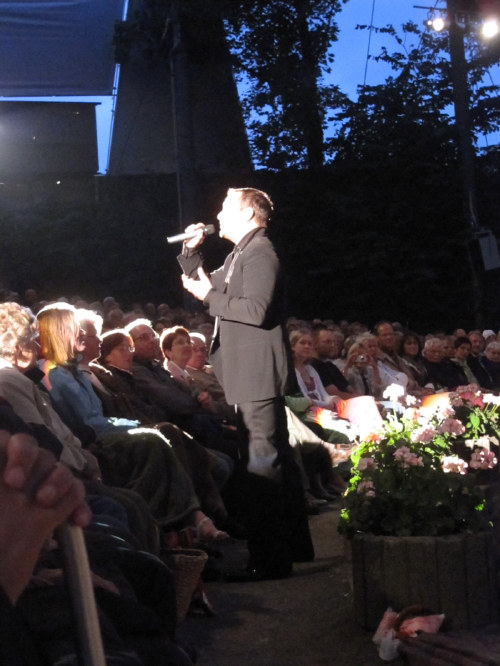 Die musikalische Leitung und Moderation übernahm Lior Shambadal und entführte das Publikum charmant in den 2. Teil des Abends in die Welt der Operette. Viele wunderschöne Walzermelodien erklangen. U. a. ein Auszug aus der Operette "Die Czárdásfürstin" von Franz Lehár, sowie "Lippen schweigen", "Tanzen möcht ich" mit einer kleinen Tanzeinlage von Björn und Deborah Sasson. Nicht zu vergessen, das dazu passende gesungene "Dein ist mein ganzes Herz" von Björn. Es folgten die verschiedensten und wundervolle Walzerklänge von Emmerich Kálmán und von Johann Strauß. Die tanzenden Blätter der beleuchteten Bäume bewegten sich mit dem Wind zum Takt der Musik. ...