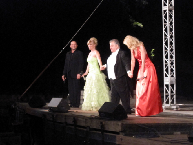 ...dessen Orchester den Abend mit Mozarts "Zauberflöte" einleitete. Ein hochkarätiges Opern-Repertoire mit den verschiedensten Arien der drei hervorstechenden Künstlern kamen zum musikalischem Genuß. Arien und Duette u. a. von Mozart, Puccini, Verdi... von Björn besonders stimmgewaltig hervorgetragenes "No Puede Ser" aus "La Tabernera del Puerto" von Pablo Sorozabal.