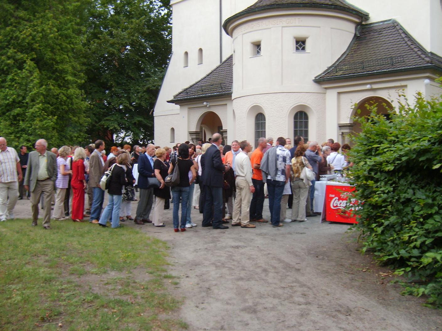 Die Hitze in der Kirche begann langsam bei den Künstlern und dem Publikum ihre Wirkung zu hinterlassen. In der Pause verwandelte sich der Vorplatz wieder in eine lange Reihe der Wartenden. Dieses Mal vor dem Getränkeausschank.
