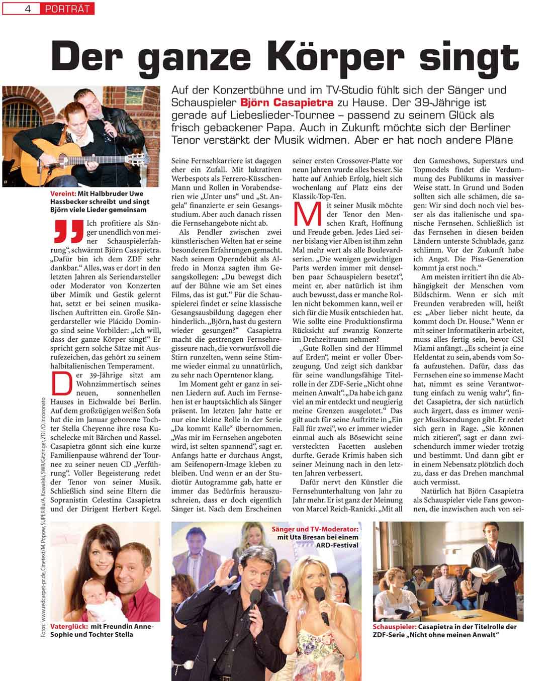 habe mir heute "Die Aktuelle" gekauft und nach dem Artikel über Björn Ausschau gehalten, das ist ja leider nur ein winziger Artikel und einiges widerspricht sich ein wenig mit dem was er so in den letzten Berichten erzählt hat.Aber egal, war schön mal wieder was über ihn zu lesen.