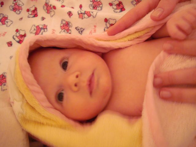 Na da fängt der Tag doch gleich nochmal so schön an, wenn man in so ein süßes Gesichtchen schaut und zwei so große Kulleraugen (sind sie eigentlich braun?)einen anblicken. Aber so klein, verändern sie sich wirklich täglich, wenn man sich so die ersten Bilder anschaut, das ist schon ein Unterschied. Ein wirklich süßes kleines Mädchen, das wird mal schwer für Papa Björn, wenn da in einigen Jahren die kleinen Jungs Schlange stehn