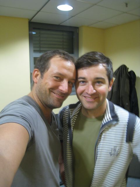 sind gerade in der garderobe angekommen und haben versucht ein bild zu machen auf dem wir nicht schwul aussehen.
