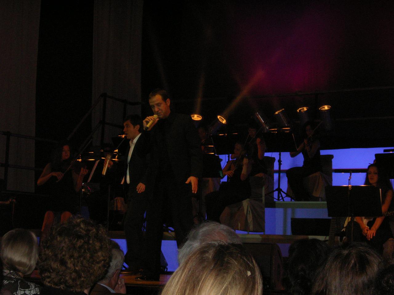 Im zweiten Teil des Konzertes wurde es ein wenig rasanter. Die Musikerinnen nahmen ihre „alten“ Plätze wieder ein und die Tenöre nutzten jetzt die ganze Bühne. Drapierten sich im Aufgang, oder oberhalb des Orchesters und sangen was das Zeug hielt. Teilten sich gemeinsam das Lied „Funicula, Funiculi“ und animierten die Besucher, mitzumachen. Allen voran: Björn! Mittlerweile hatten auch die Zuschauer eingesehen, dass es einfach mehr Spaß macht, sich locker mit einzuklinken. Sie klatschten rhythmisch im Takt und sangen sogar lautstark mit. Die Atmosphäre hat mir gefallen. Der Saal füllte sich mit Leben. Endlich!