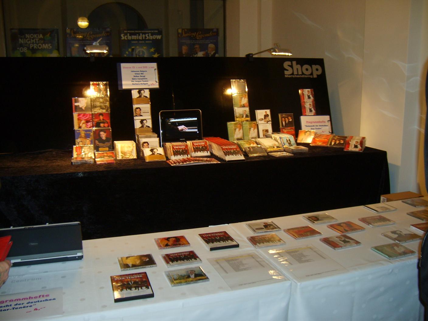 Schnell ein Foto von der Auslage und weiter Richtung Saal. Meine Kamera noch in der Hand konnte ich mir die Hausordnung von zwei netten Herren anhören: Kein Blitzlicht und keine Videoaufnahmen gestattet. Mit der nüchternen Erkenntnis im Kopf wollten wir unsere Plätze einnehmen. Türen noch geschlossen. Probleme mit der Technik………………..