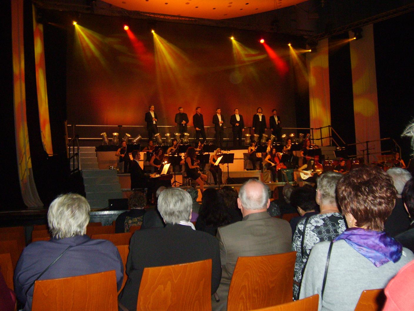 ………….dann fing das Konzert an. Im Saal konnte man eine Stecknadel fallen hören. Die einzigen Bewegungen fanden auf der Bühne statt. Alle Tenöre standen neben einander und sangen: Ein Lied geht um die Welt! Dahinter das Orchester. Bestehend nur aus weiblichen Mitgliedern. Der einzige Mann davon saß am Keyboard. Florian Schäfer. Musikalischer Leiter des Abends.