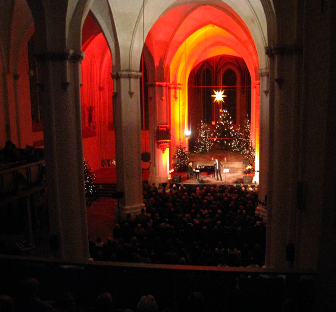 weihnachtlich war es in Rostocks Nicolaikirche. Ein bezauberndes Programm verzauberte die Menschen u. a. mit dem Weihnachtsmedley "Süßer, die Glocken nicht klingen - Leise rieselt der Schnee - Oh Du Fröhliche, Oh Du Selige". Sibylle Briner mit ihrem Solostück von Chopin und dem "Wintersong" von Katie Melua. Ein warm gesungenes "White Christmas", das tragische "Amore Perduto", das entschwebende "Into The West" aus der CD Celtic Prayer. Duette wie "Scarbourgh Fair", "Last Unicorn" und "In The Arms Of The Angel"... sie wartet immer noch auf den rettenden Engel, der sie in den Arm nimmt, Wärme und Stärke gibt und durch das entstehende Licht der Zuversicht ihre Träume erstrahlen läßt... moderiert und weiter führte Björn Casapietra in die Welt der nicht erahnenden Songs - welche, werden nicht verraten.