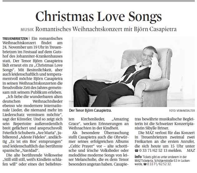 Christmas Love Songs mit Björn Casapietra in Braunschweig im edlem Gastwerk...