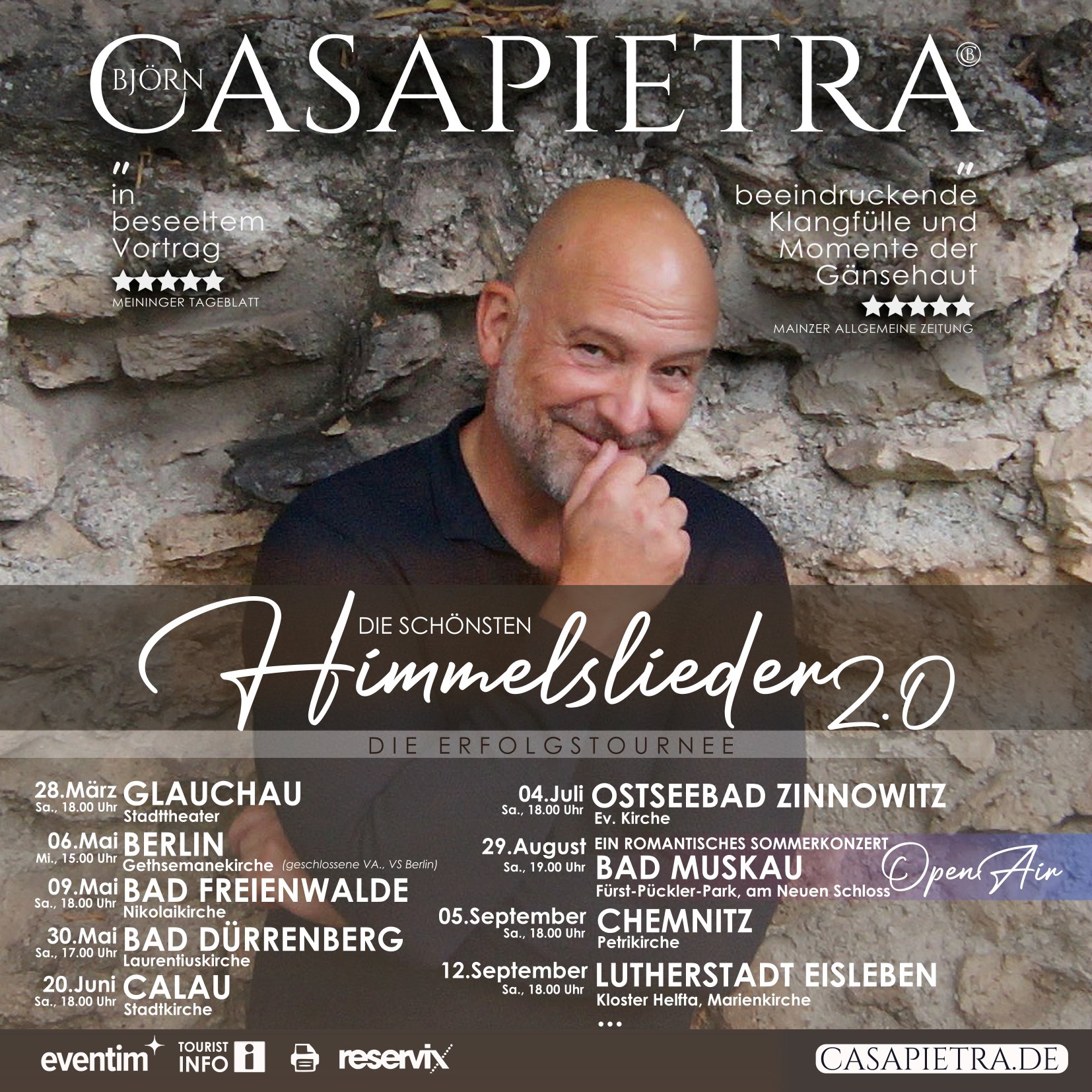 Tourneeveranstalter Hübner Konzerte - Wir sind Musik Andreas Hübner Nordstraße 7 02994 Bernsdorf Tel.: 0157 70411868 Fax: 032 222341802 AndreasSenftenberg@t-online.de www.huebnerkonzerte.de |